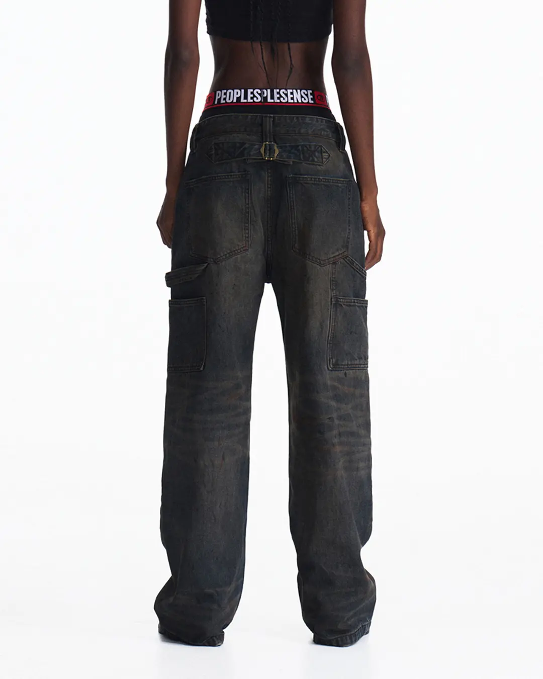 Peoplesense Irregular Hole Mud-Dye Jeans