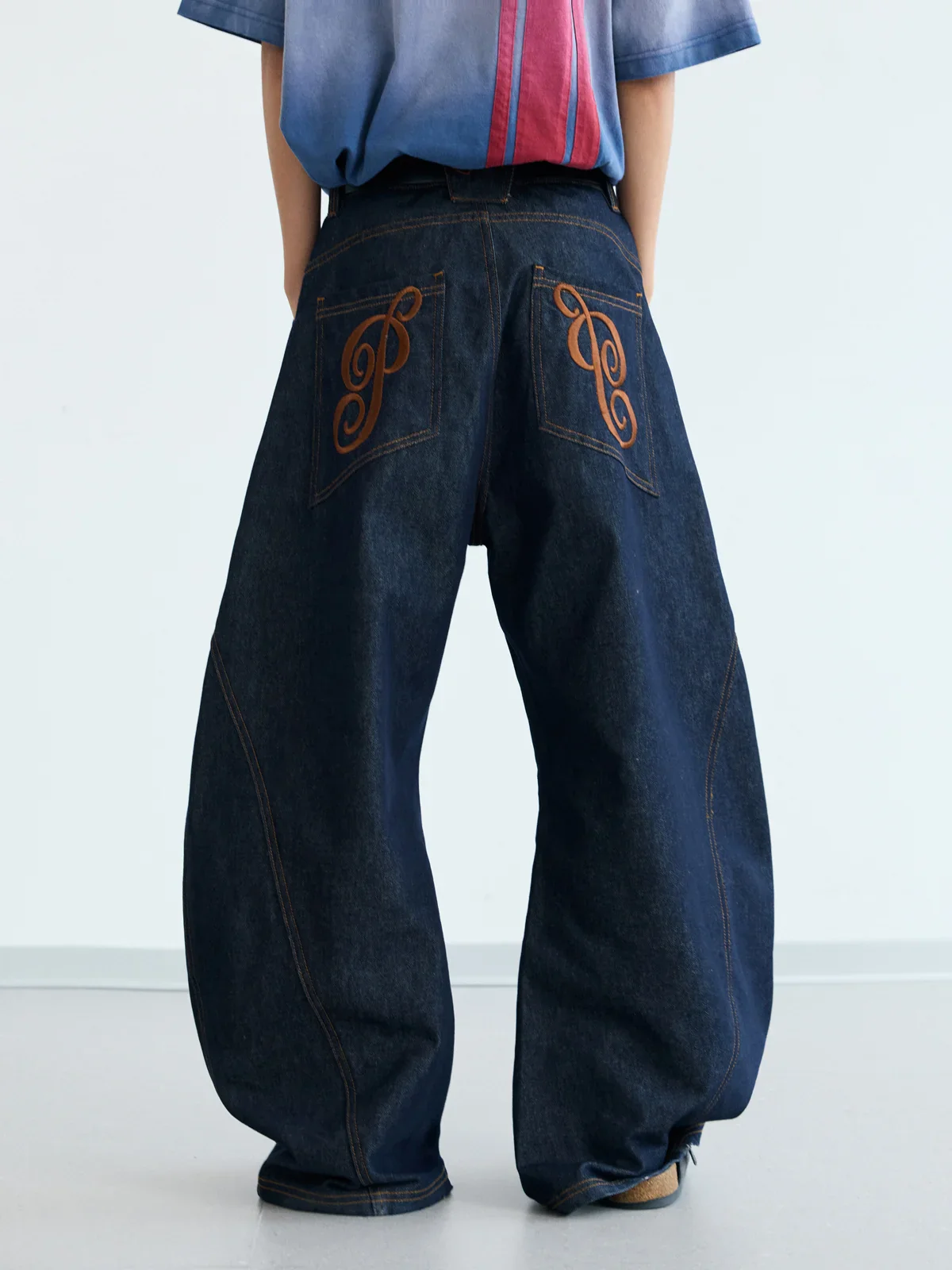 Peoplesense Raw Denim Deconstructed Curved Leg Jeans