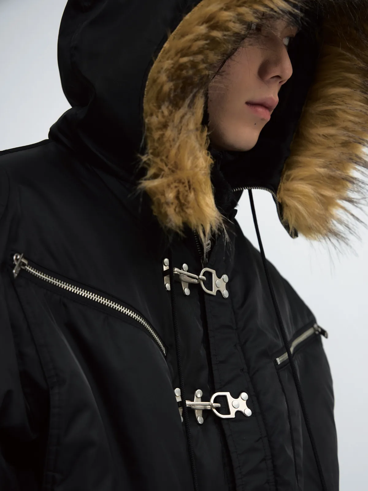 Peoplesense Short Flight Jacket with Fur Hood Black