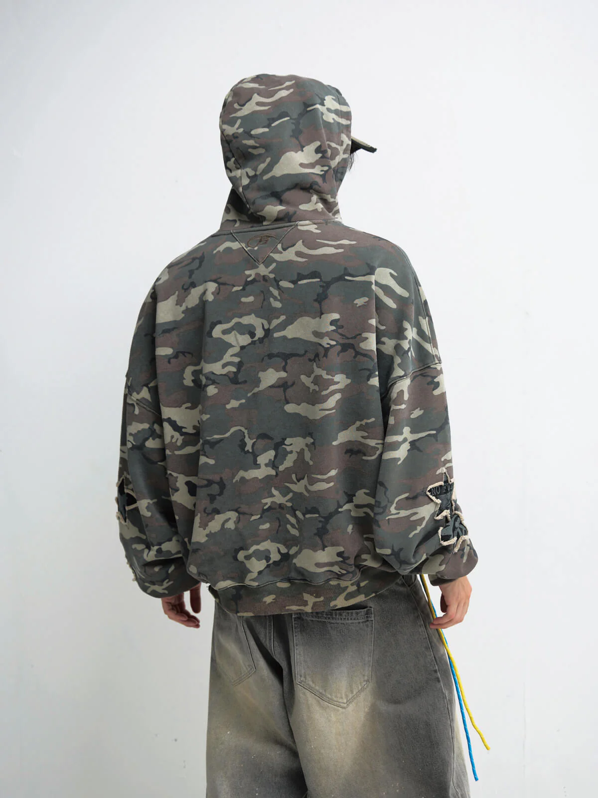 Peoplesense Vintage Camouflage Embroidered Hoodie